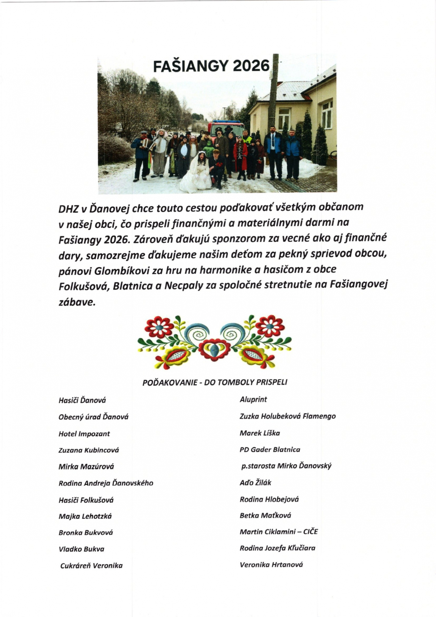 Poďakovanie fašiangy
